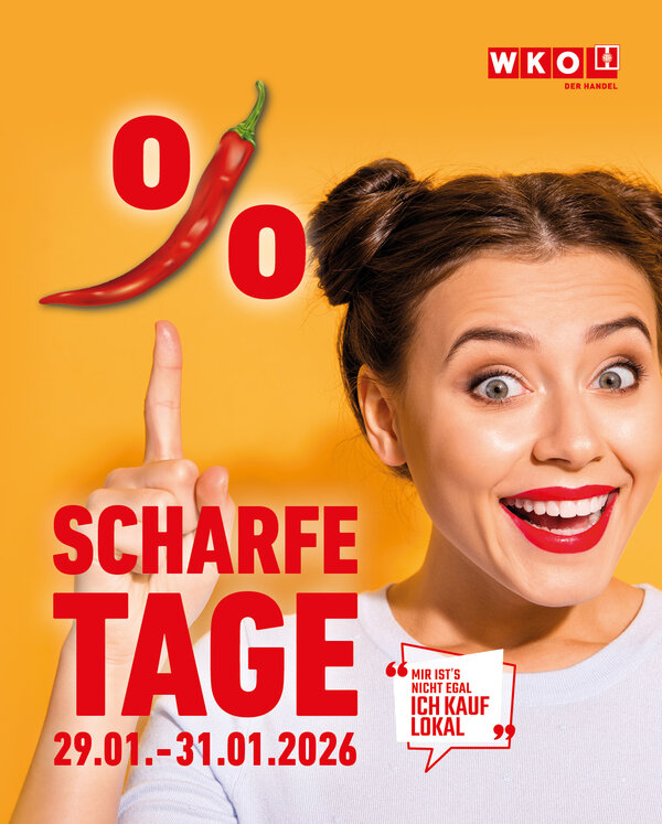 Am Donnerstag, 29. Jänner 2026 beginnt der ultimative Abverkauf mit den besten Last-Minute-Aktionen, die der Österreichische Handel zu bieten hat. Unter dem Motto „Shoppen und Sparen“ gibt es bis einschließlich Samstag, 31. Jänner 2026 überall, wo die feuerrote Chilischote zu sehen ist, tolle Rabatte und feurige Angebote. Zahlreiche Shops aus vielen Branchen in ganz Österreich laden auch diesen Winter wieder drei Tage lang zum exklusiven Shopping-Vergnügen ein. Mit attraktiven Angeboten zum Sonderpreis – für die ganze Familie versteht sich. Im Rahmen der „Scharfen Tage“ lassen die beteiligten Unternehmen die Preise so richtig in den Keller purzeln und sorgen damit für beste Einkaufsstimmung bei ihren Kunden. Jetzt ist die richtige Gelegenheit, sich die langersehnten Lieblingsteile endlich zu gönnen.